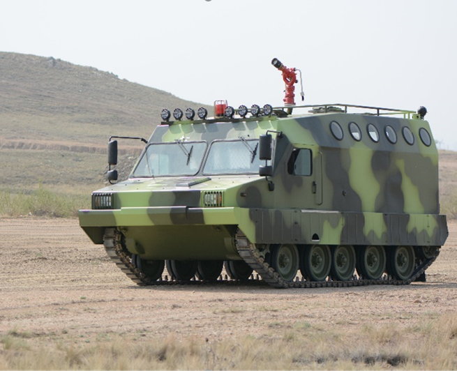 履带式森林消防运兵车是内蒙古一机集团针对森林消防特殊环境研制开发的特种消防运兵车,可轻易撞倒胸径10cm粗的灌木丛林,能够确保在森林行驶过程中车内人员的绝对安全;车辆通过性强,越壕沟宽达1.5m,可通过水深约1m的河流和泥泞沼泽等复杂地形;车辆装载能力强,可承载17名消防人员,同时在车内和车辆上方设置载物空间,可在森林消防任务中起到装载消防灭火装备、给养供给等重要作用。