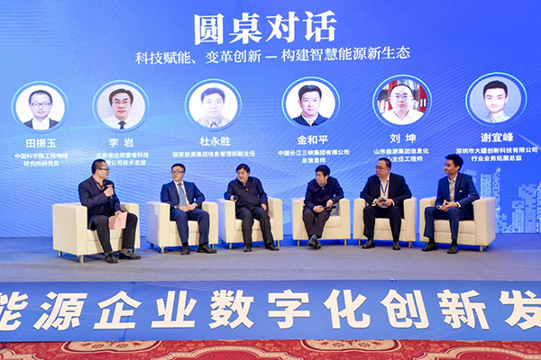 高端对话环节由中国科学院工程物理研究所研究员田振玉主持,出席的嘉宾代表有:中国长江三峡集团有限公司总信息师金和平、国家能源集团信息化管理部副主任杜永胜、山东能源集团信息化中心主任工程师刘坤、北京信达探索者科技有限公司技术总监李岩、 深圳市大疆创新科技有限公司大疆行业应用能源拓展总监谢宜峰。各位嘉宾围绕“科技赋能、变革创新—构建智慧能源新生态”这一话题进行了对话和探讨。