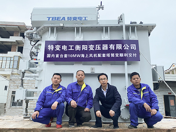 近日,由特变电工衡变公司(以下简称“衡变公司”)自主研制的型号为SR(H)SP-F-11700/35的国内首台最大容量10MW海上风电塔筒变压器,在三峡能源福建长乐海上风电项目现场一次投运成功,这也是我国首台套实现并网运行的国产化10WM海上风电塔筒变压器。