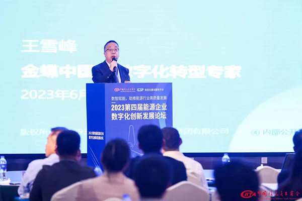 金蝶软件(中国)有限公司能源行业专家王雪峰从能源行业企业的数字化转型需求洞察、数字化技术在管理中的典型应用场景、金蝶助力企业管理创新中的实践分享、金蝶在能源行业的成功应用案例分享四个方面围绕《数治企业 强国动能——金蝶助力能源企业数字化转型》这一课题作了主题演讲。